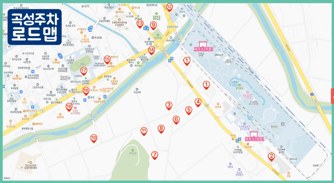 | 주차 | 임시 주차장 다수 운영 (오곡초등학교, 곡성농협 등) |