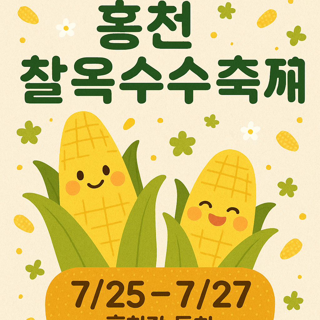 📢 옥수수 좋아하신다면 이 축제는 절대 놓치면 안 됩니다!📅 지금 일정 캘린더에 저장하고, 가족과 함께 여행 계획 세워보세요.👉 홍천 찰옥수수 축제 공식 홈페이지 바로가기