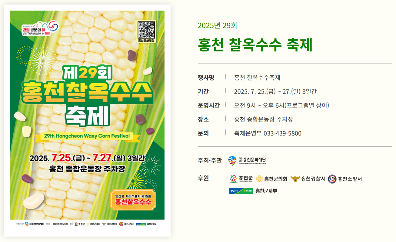| 🎪 행사명 | 제28회 홍천 찰옥수수 축제 |