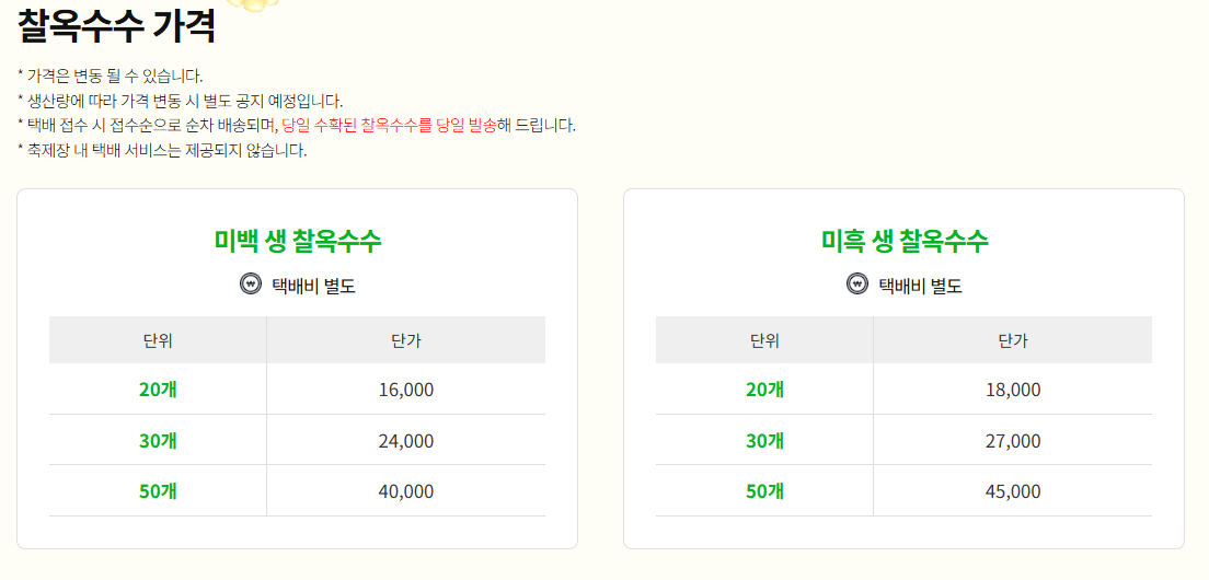 시중보다 저렴한 가격으로 옥수수 박스 구매 + 택배 서비스